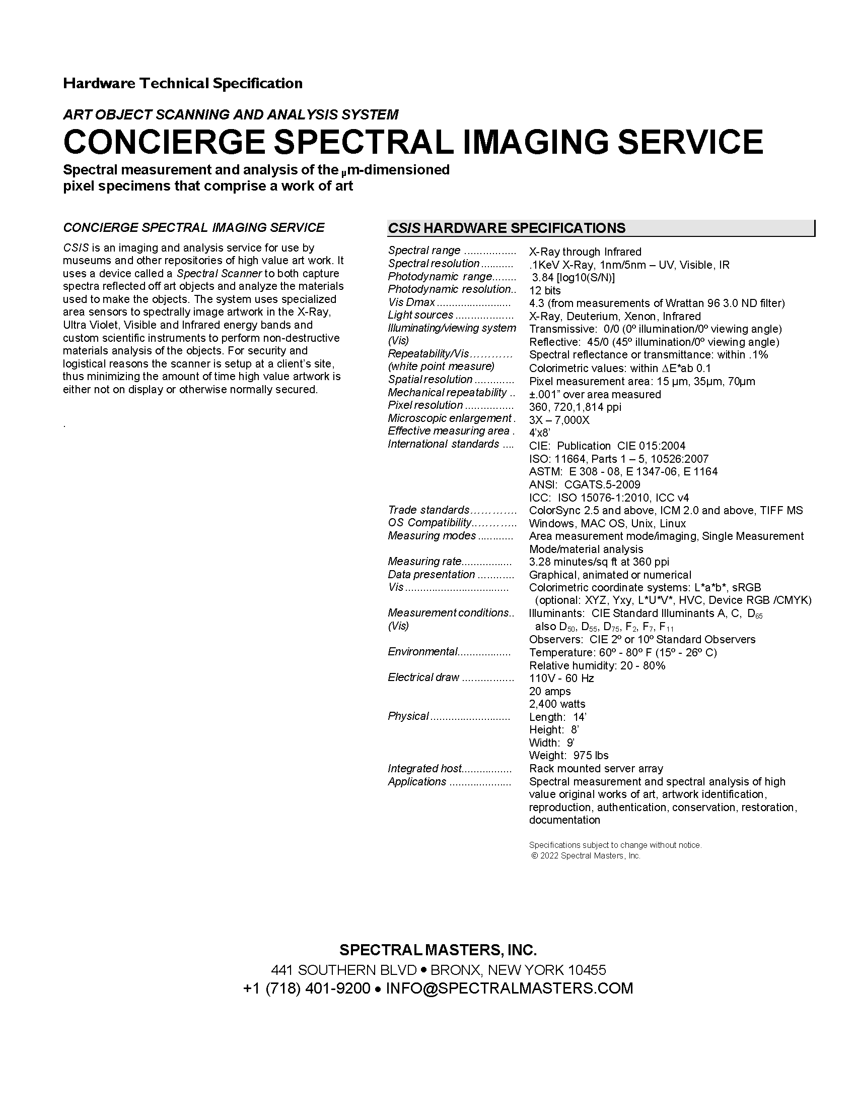CSIS Spec Sheet